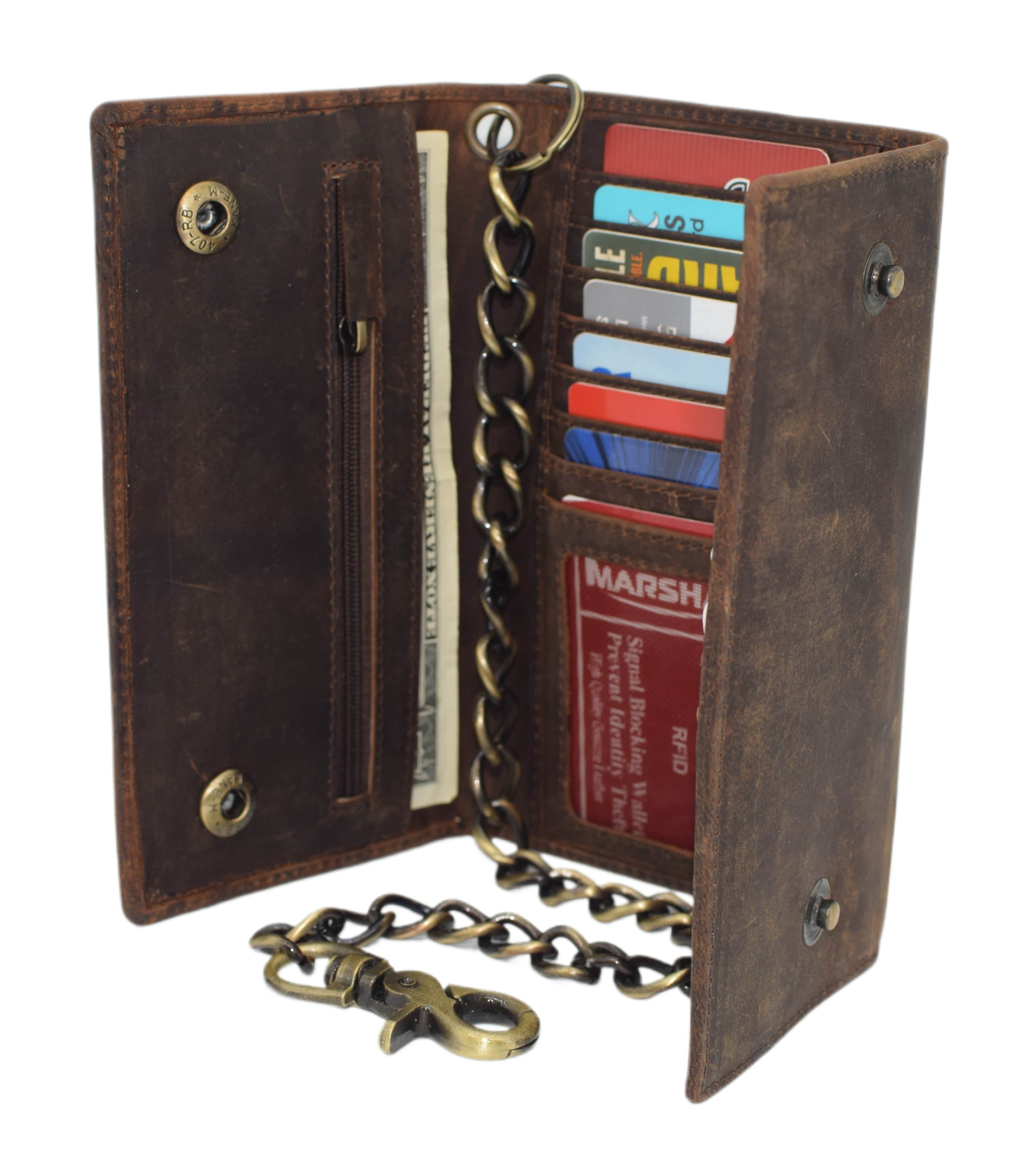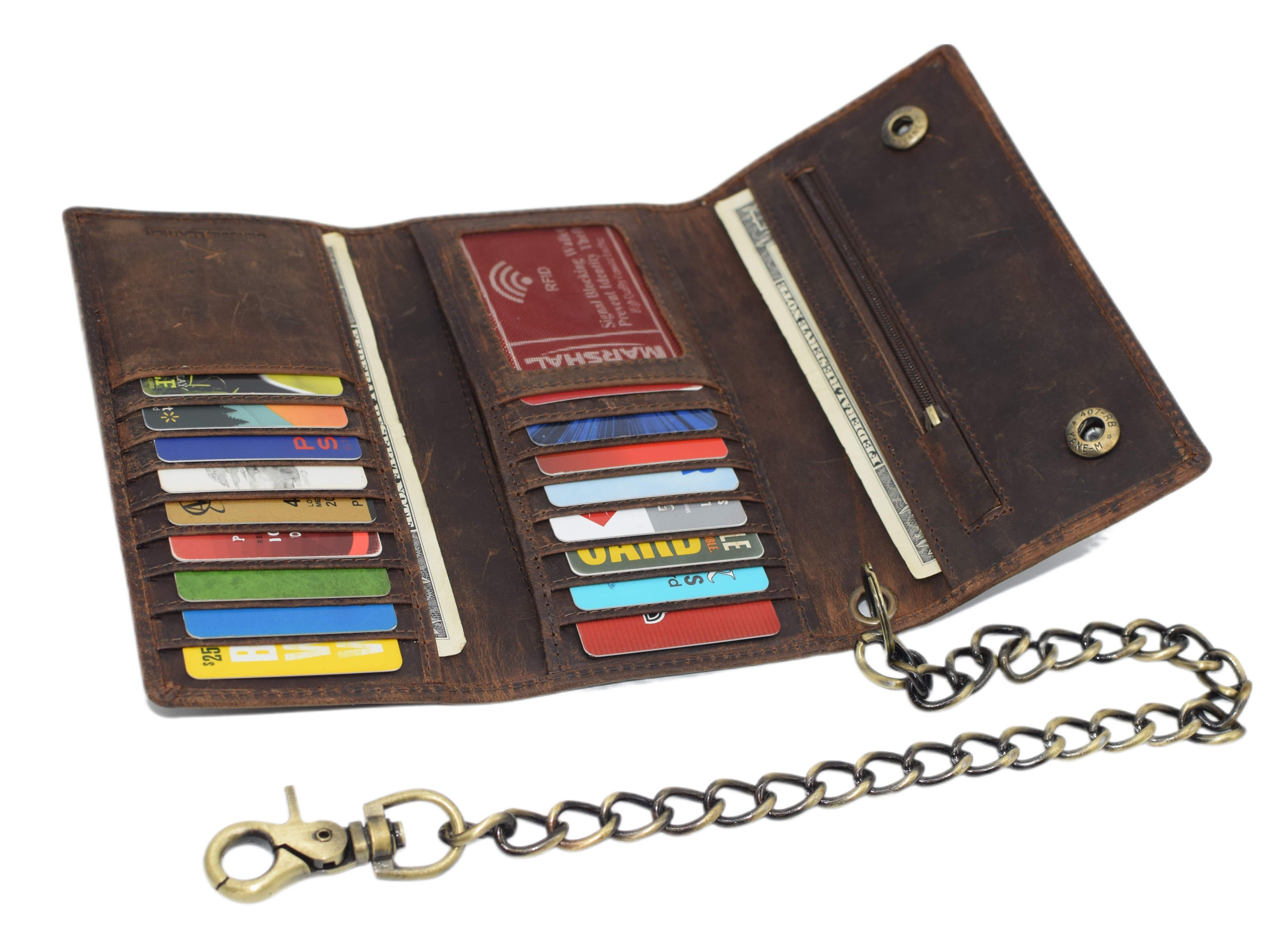 This chain wallet will provide the satisfaction of being able to carry a large amount items in your wallet without sacrificing the idea of keeping your wallet slim and minimalist.Purchasing this wallet will help you avoid the pain of having your wallet stolen. The chain clips into your belt loop for the convince of our customers and enhances the style of your outfit.